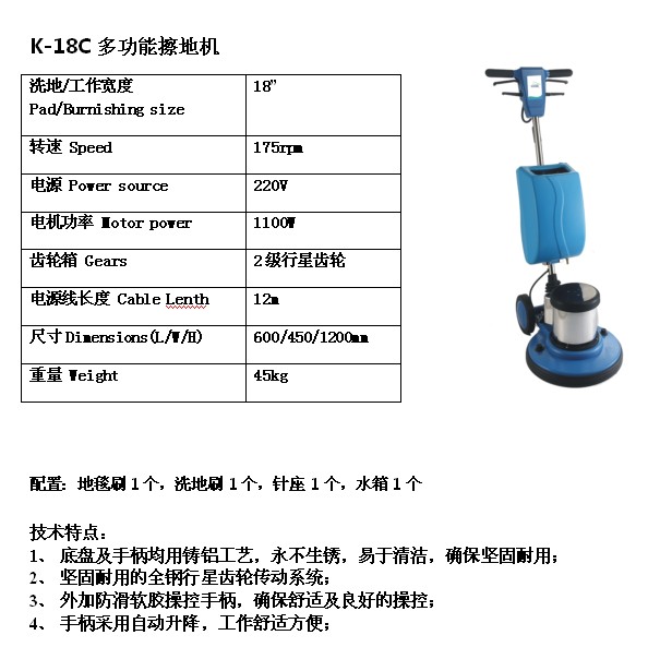主頁(yè)  > 產(chǎn)品展示  > 商用清潔設(shè)備  > K-18C多功能擦地機(jī)